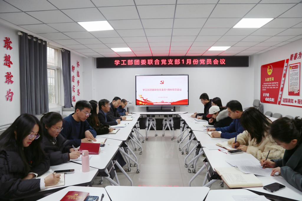 1月18日上午,学工部团委联合党支部在尚朴楼一楼会议室召开了2026年1月份党员大会。会议由党支部书记郭理想主持。