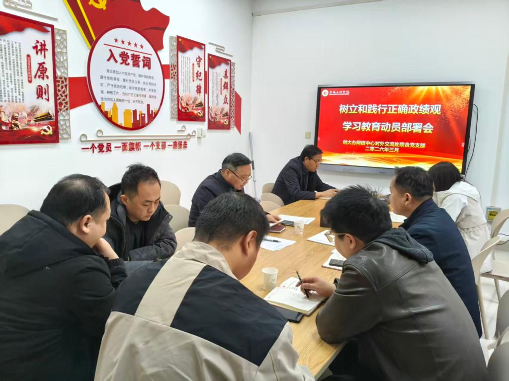 3月13日下午,创大办网信中心对外交流处联合党支部召开树立和践行正确政绩观学习教育动员部署会。支部全体党员参加会议,会议由党支部书记郭锋航主持。